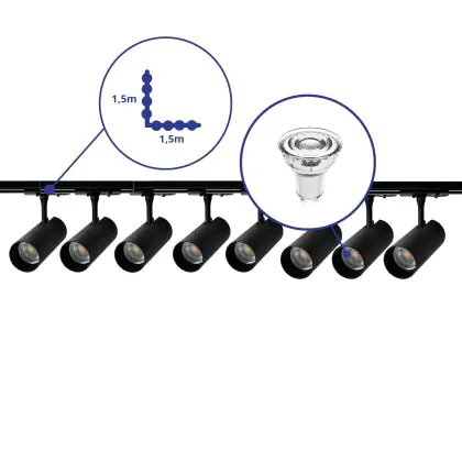 | Manufacturer Name | Complete L shaped 1-Phase Track Set Black incl. 8x Spot fixture + GU10 2700K 3W Dim – 1,5 x 1,5 mete | |