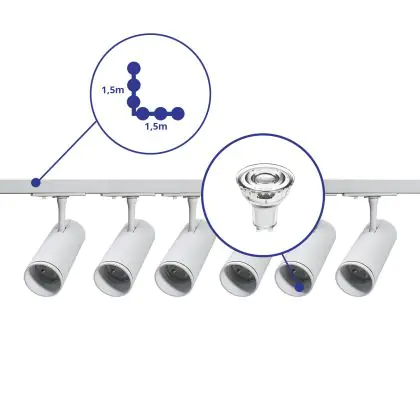 | Manufacturer Name | Complete L shaped 1-Phase Track Set White incl. 6x Spot fixture + GU10 2700K 3W Dim – 1.5 x 1.5 mete | |