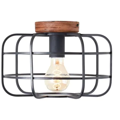 Brilliant Gwen Ceiling Light Metal Wood Black | 300mm - Suitable for 1x E27