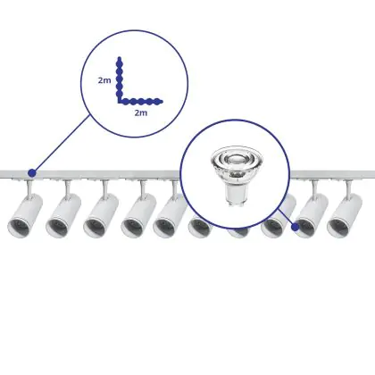 | Manufacturer Name | Complete L shaped 1-Phase Track Set White incl. 10x Spot fixture + GU10 2700K 3W Dim – 2 x 2 meters | |