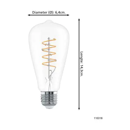 Eglo LED E27 Edison Clear Filament 7.3W 806lm - 827 Extra Warm White | Replaces 60W