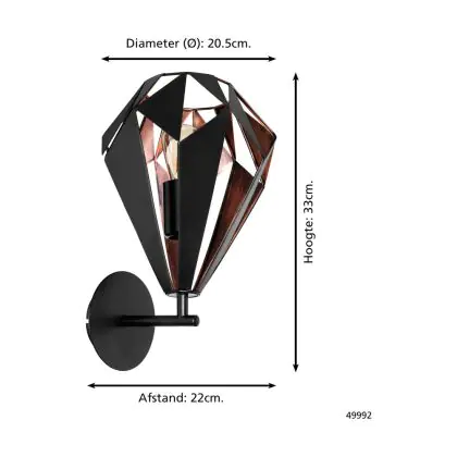 Eglo Wall Light Carlton 1 Steel Black Copper | IP20 - Suitable for 1x E27