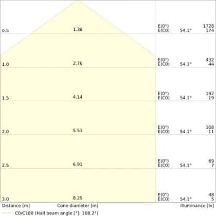 ![]() The colour code is a combination of colour rendering (CRI) and light colour (Kelvin). The first number indicates the colour rendering (1 = very poor colour rendering, 9 = maximum colour fastness). The second and third number contains the light colour. Example: the colour code 830 consists of good colour rendering (8) and warm white light (3000K). |