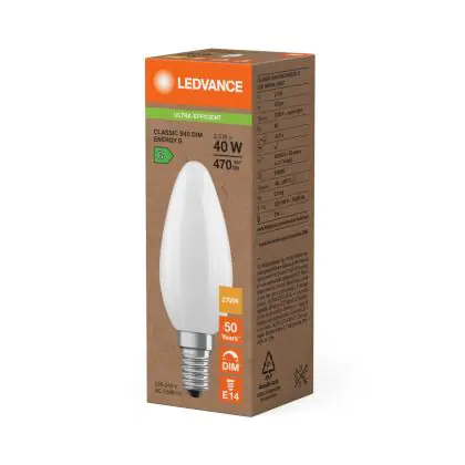 Ledvance Classic LED E14 Candle Frosted 2.5W 470lm - 827 Extra Warm White | Dimmable - Replaces 40W
