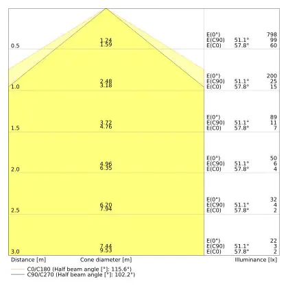 ![]() The colour code is a combination of colour rendering (CRI) and light colour (Kelvin). The first number indicates the colour rendering (1 = very poor colour rendering, 9 = maximum colour fastness). The second and third number contains the light colour. Example: the colour code 830 consists of good colour rendering (8) and warm white light (3000K). |