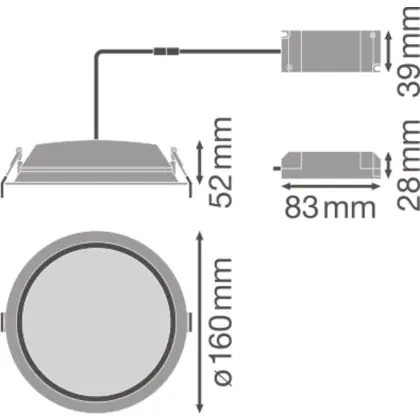 Description Ledvance LED Downlight Alu DN150 14W 1190lm 100D - 830 Warm White | 160mm - IP44 - Dali Dimmable