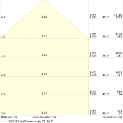 A beam angle indicates the angle of the light beam coming from a light source. The smaller the radiation angle in degrees (D), the narrower the beam angle.