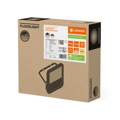 Ledvance LED Floodlight 100 Aluminium White 69W 9150lm 100D - 830 Warm White | IP66 - Symmetrical