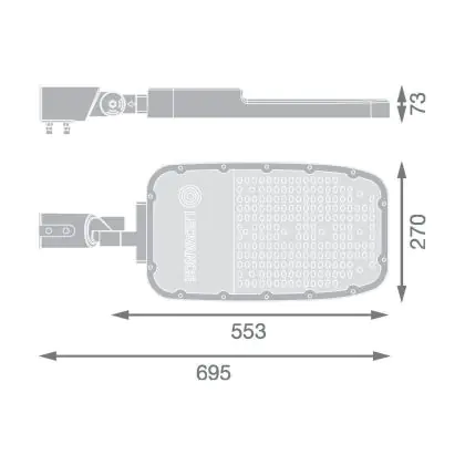 Ledvance LED Streetlight Area Extra Large RV35St Aluminium Grey 150W 19500lm 155X69D - 727 Extra Warm White | IP66 - Asymmetrical