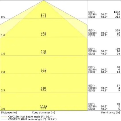 ![]() The colour code is a combination of colour rendering (CRI) and light colour (Kelvin). The first number indicates the colour rendering (1 = very poor colour rendering, 9 = maximum colour fastness). The second and third number contains the light colour. Example: the colour code 830 consists of good colour rendering (8) and warm white light (3000K). |