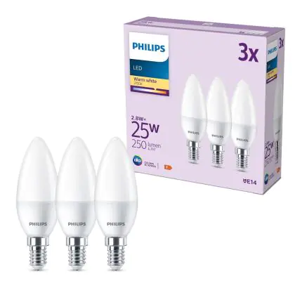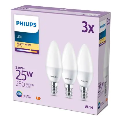 | Manufacturer Name | Box 3 stuks - Philips LED Kaarslamp Mat - 25 W - E14 - Warmwit licht | |