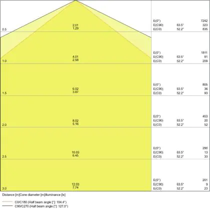 The Luminous Efficacy (lm/W) indicates how efficiently a light source uses energy. We divide the number of lumens by the wattage. The higher the number, the more efficient a product is in terms of energy consumption. LED lighting has a considerably higher lumen/Watt ratio than conventional lighting.