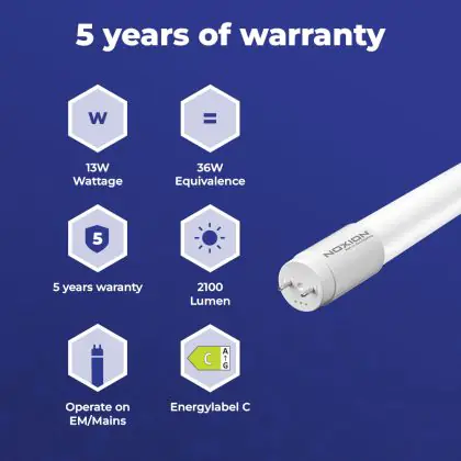 | Manufacturer Name | Noxion Avant LEDtube T8 Extreme HO (EM/Direct) 1200mm 13W/840 (36W eqv.) with Starter | |