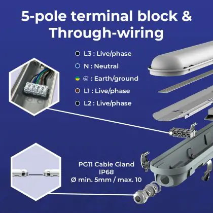 Noxion LED Waterproof Batten Poseidon V3.0 35-65W 4550-9100lm - 830-865 CCT | 150cm - Through Wiring (5x2.5mm2) - Emergency 3H