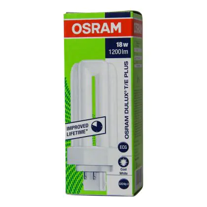 Also, the Osram DULUX T/E 18W/840 PLUS GX24q-2 Lumilux Cool Whitelifespan is very long, up to 13000 hours. These lamps are also very energy efficient, they have an energy label classified A.