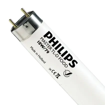 Philips TL-D Food 58W 79 - 150cm providing light at a color temperature of 4000K, which corresponds to a cold white light. The color rendering index is also excellent, more than 80Ra.